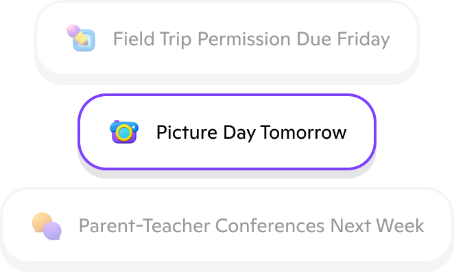 Every school announcement and event in one place, with built-in reminders.